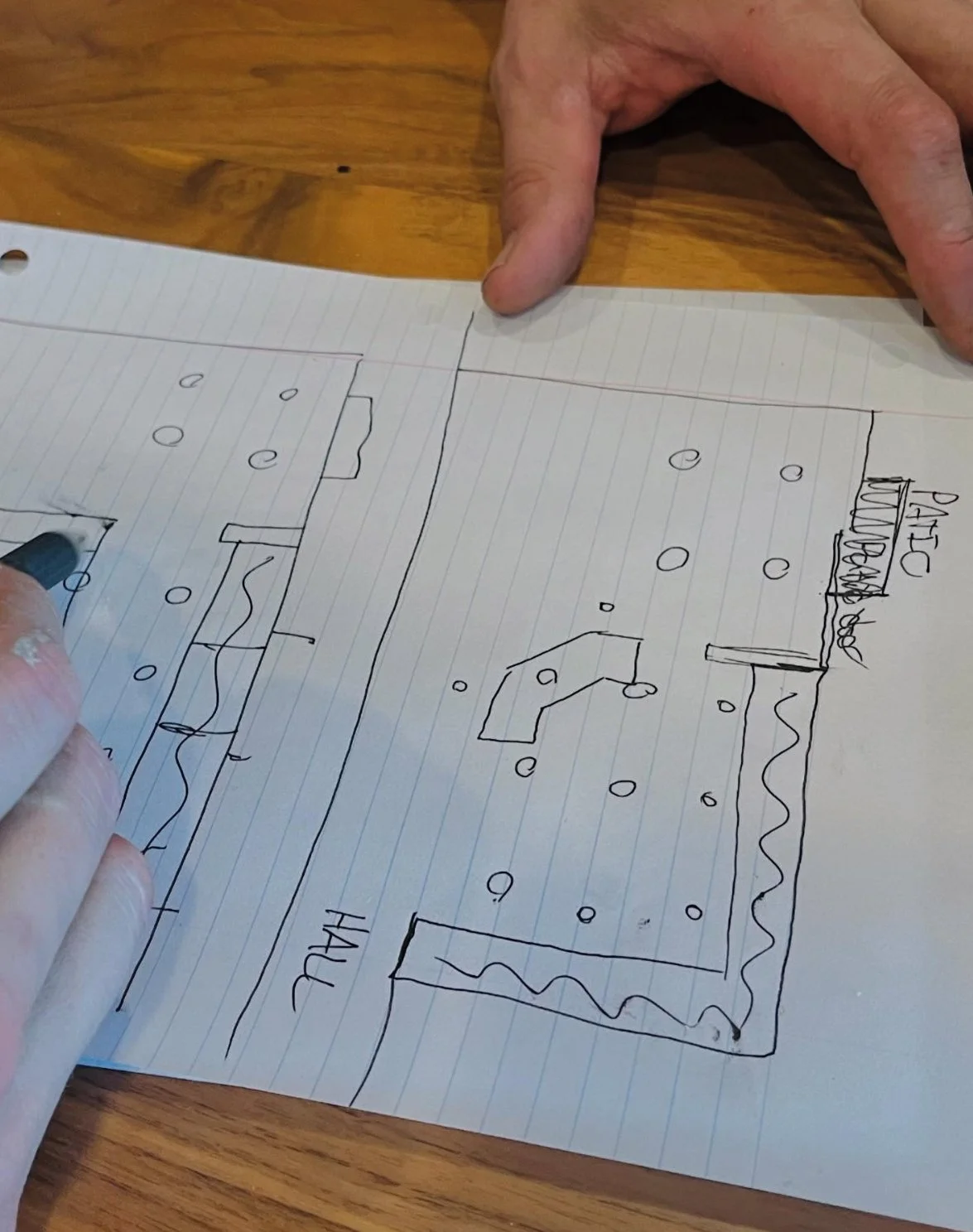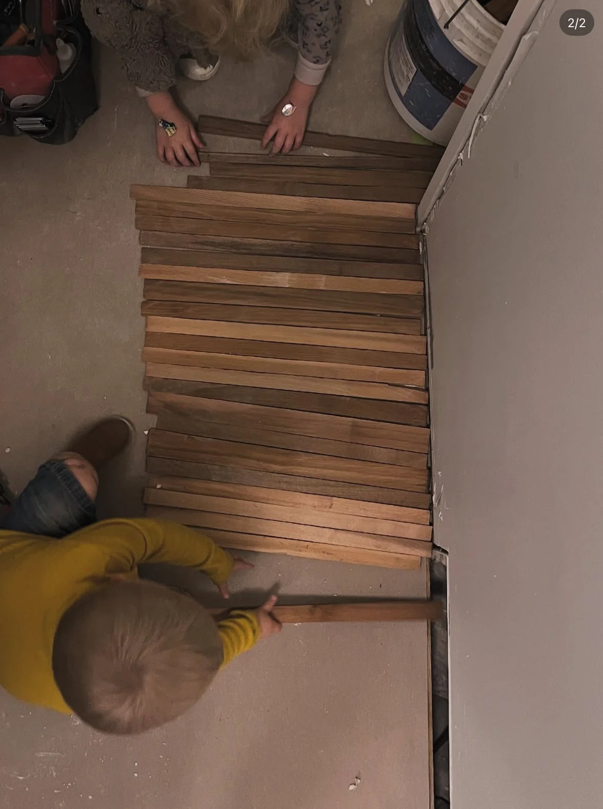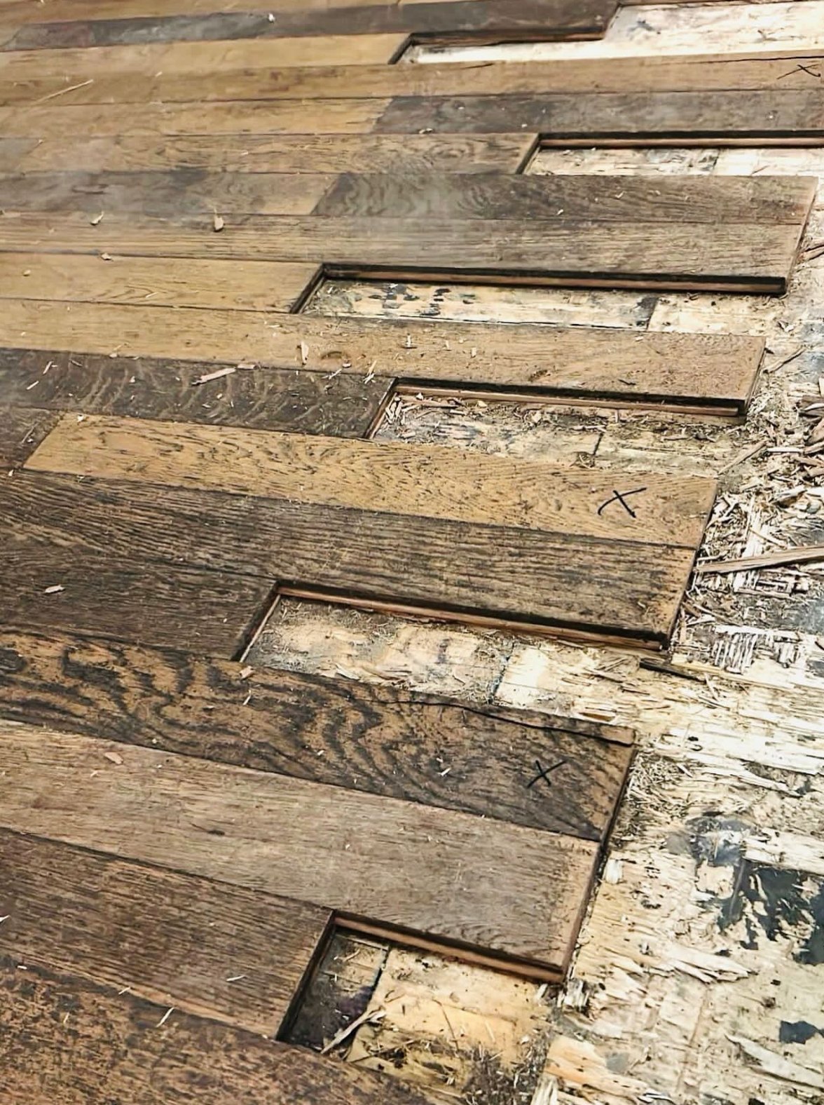 Aug 14, 2025: Plotting out how we’ll weave new hardwood into old. After this we’ll sand it all down and stain it!