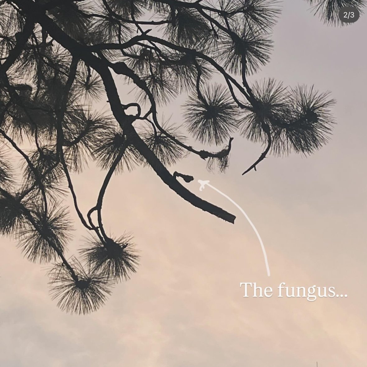 - They’re both apparently sick with a fungus (which looks like bulbs on the branches) that is making their branches droop and is just slowly killing the tree
