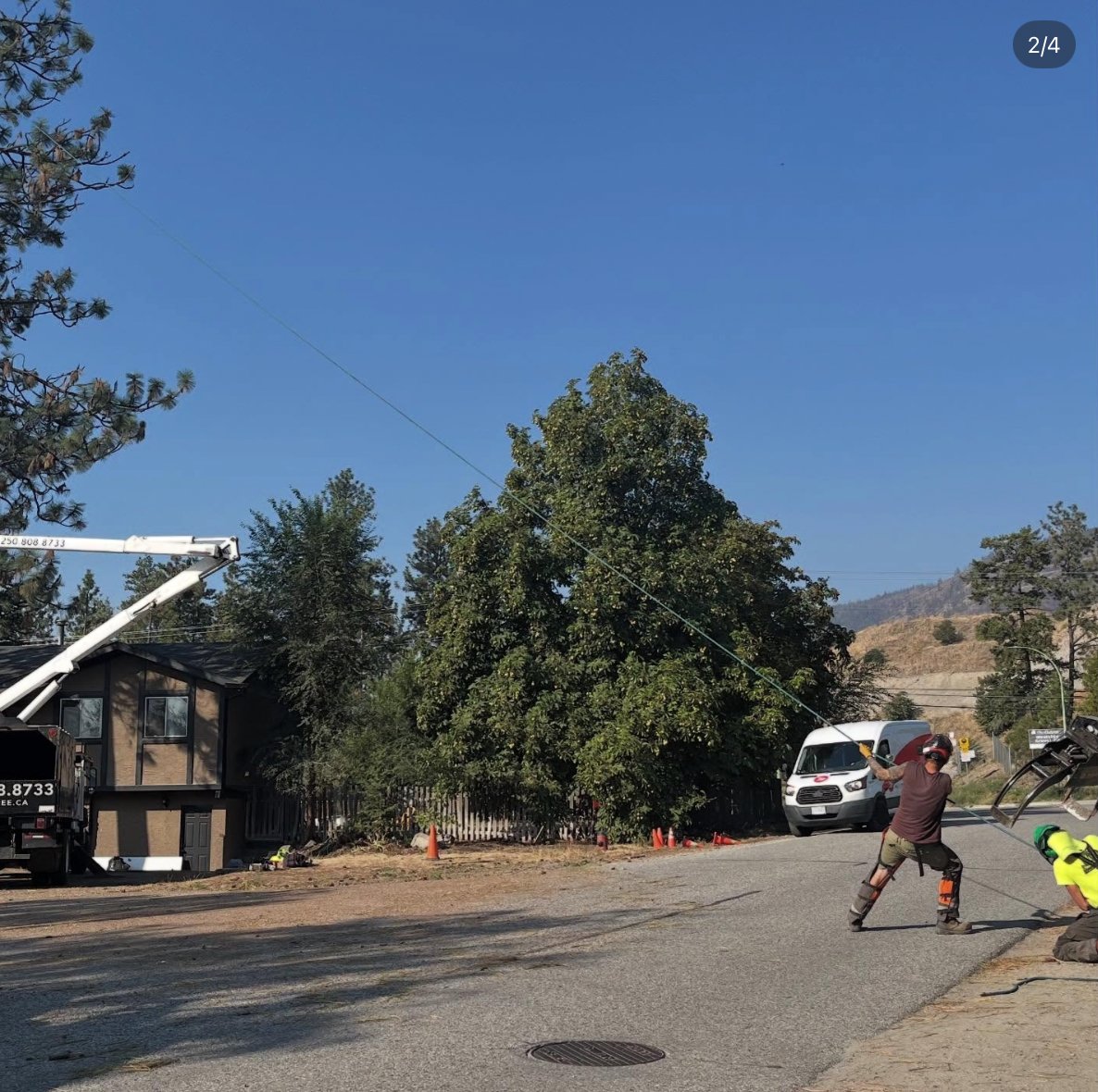 It is veeery close to the house and leaning towards it! There are two ropes tied from the top to two vehicles below which slowly backed up as the tree was cut. The @ninja_treeservice team is a well oiled machine and Steve, the fearless leader, is amazing!!